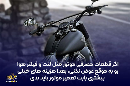 - با انجام کارهای عجیب غریب مثل بار وانت به موتور زدن و دستکاری باعث نشیم که عمر مفید موتور سیکلت پایین بیاد
